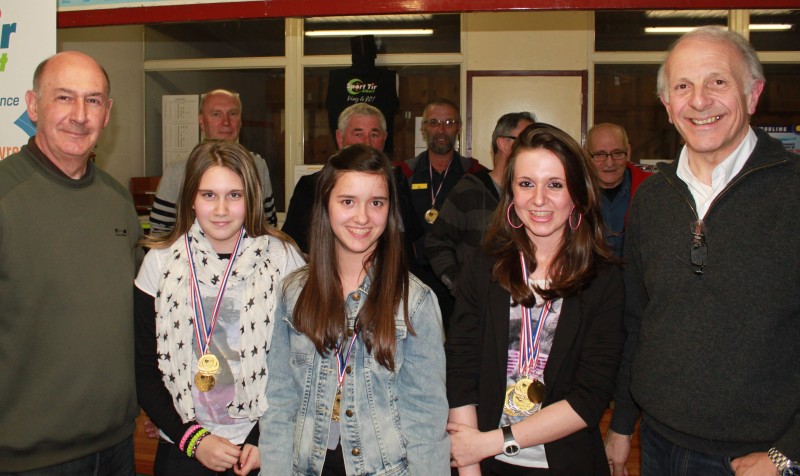 Sarah, Léa et Manon, compétitrices avec Laura Perette, absente sur la photo, en carabine 3 positions 10 mètres et Justine Roueste, toujours aussi souriante