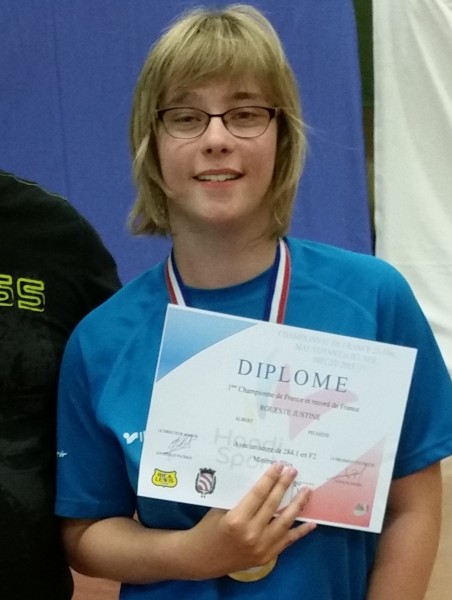 Justine Roueste s'est brillamment distinguée aux derniers championnats de France F.F.H (Fédération Française Handisport) qui se sont déroulés à Dieuze (Lorraine) du 25 au 27 juin 2015.