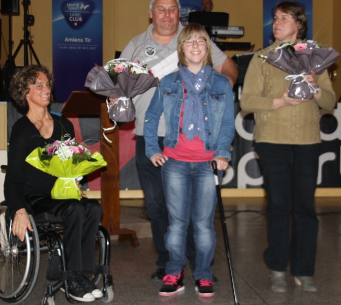 Après avoir été élue "Championne de l'année" lors de la soirée organisée par l'Office du Sport d'Albert le 13 novembre dernier, notre championne de France minime de Tir carabine Handisport 2014-2015, Justine Roueste, a été distinguée dans la catégorie "jeune" lors de la soirée des champions organisée le 27 novembre dernier à Pont de Metz par le Comité Régional Handisport et le 9 décembre dernier en recevant le challenge "Robert Brandicourt" décerné par le Comité Départemental Olympique et Sportif de la Somme qui s'est déplacé pour l'occasion dans notre club.