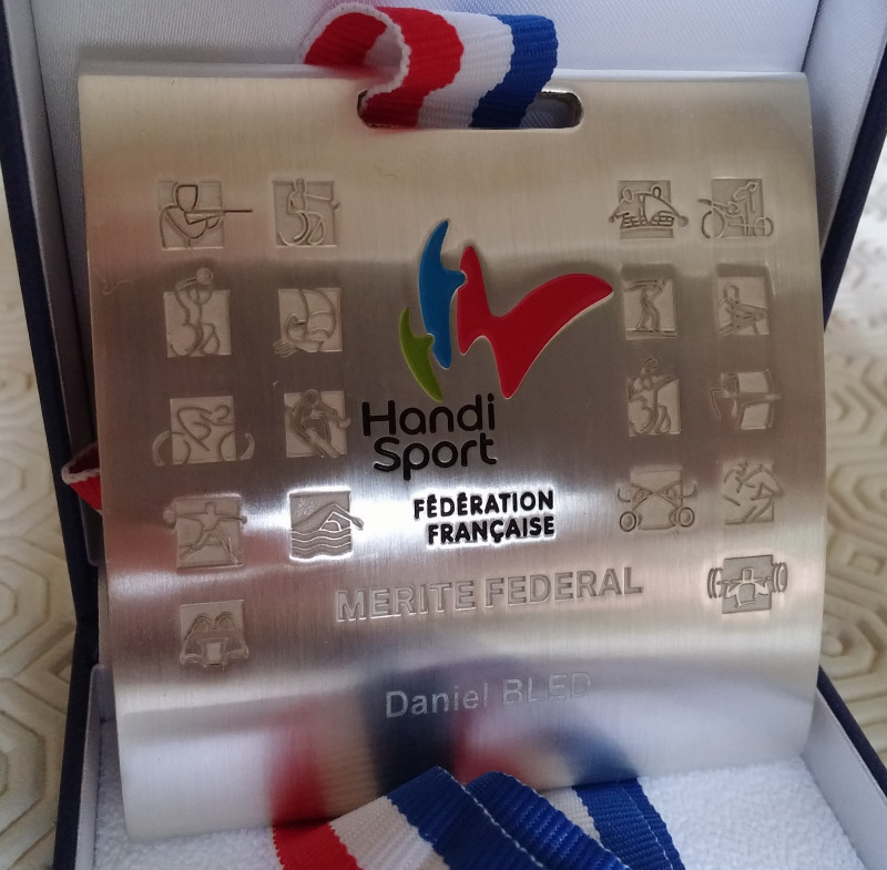 Daniel BLED, Président et entraineur de notre club, s’est vu décerner par la Fédération Française Handisport, le vendredi 3 mai dernier dans la salle du conseil municipal, la Médaille d’Argent du Mérite Fédéral pour son dévouement et son engagement au sein du mouvement handisport.