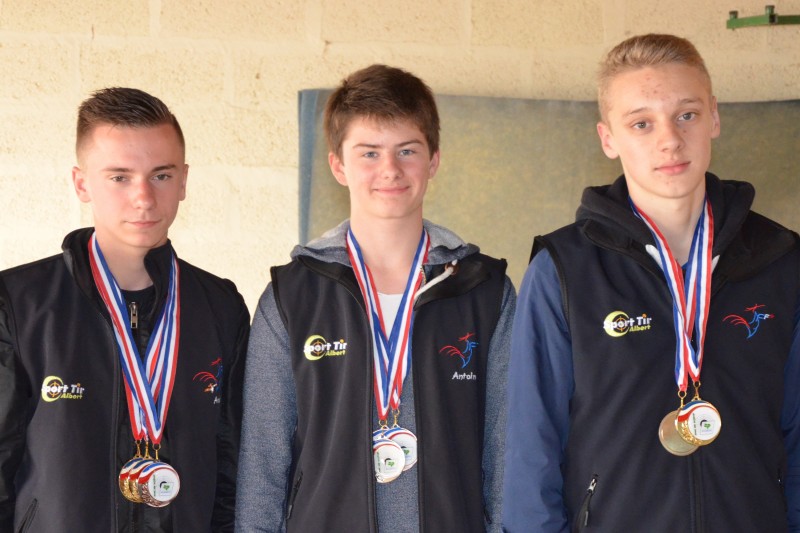 - Huit médaillés de Bronze : Antoine COPIN - cadet - pistolet 25 mètres et pistolet standard; Justine PECOURT - cadette - pistolet 25 mètres; Axel DUMONT - cadet - pistolet 50 mètres; Corentin DENIS - senior 1 - pistolet 50 mètres; Raymond COZETTE - senior 2 - carabine "couché"; Sarah FRONTIERE - cadette - carabine "couché" et Léa LHOTELLIER - cadette - carabine 3 positions.