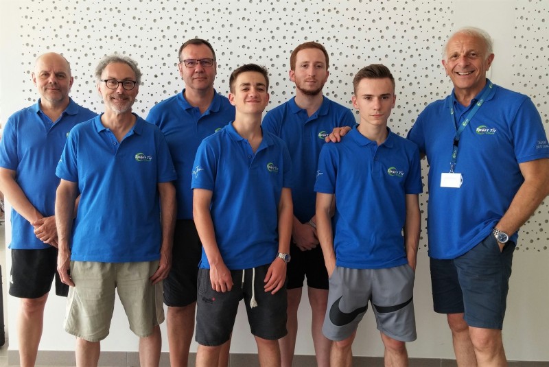 Antoine avec Théo DHENAIN et Aurélien DUREUX, s'adjugent ensuite le titre de Champions de France cadets par équipe en pistolet 50 mètres et montent, tous les trois, sur la plus haute marche du podium pour recevoir une superbe médaille d'or.