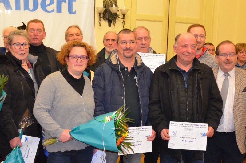 Bénévoles très impliqués dans les activités du club, nos quatre récipiendaires, précisés ci-après, ont reçu officiellement un diplôme récompensant leur engagement lors de la cérémonie du bénévolat organisée par l'association des médaillés et des bénévoles du Pays du Coquelicot en mairie d'Albert :