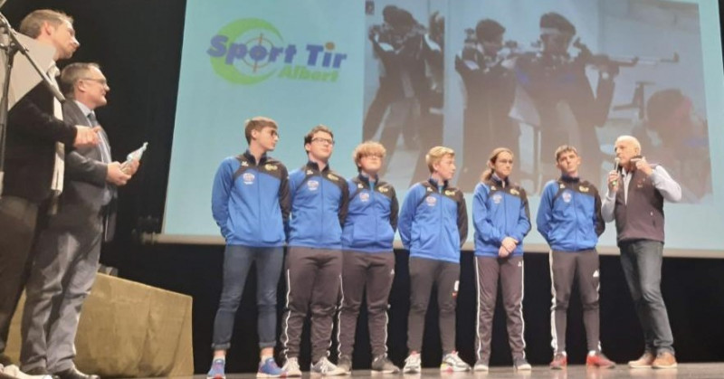 L'occasion pour Albert Sport Tir de valoriser 6 jeunes compétiteurs cadets (3 carabiniers et 3 pistoliers) et, pour votre serviteur, de présenter nos jeunes sportifs présents sur scène ainsi qu'une vidéo de quelques minutes pour communiquer sur les disciplines olympiques pratiquées au club, retracer synthétiquement son histoire depuis 1957, ses résultats sportifs et les sportifs qui ont marqués son développement...