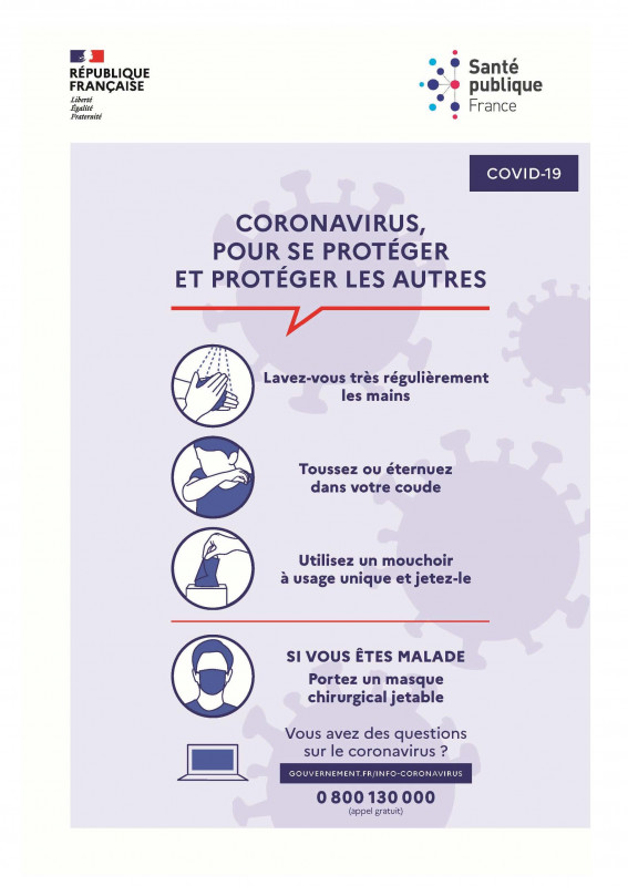 Etant donné la situation actuelle, afin de contribuer efficacement à la lutte face au coronavirus COVID-19, je me permets de rappeler à chacune et chacun d’entre vous, comme déjà précisé dans mon message du 3 mars dernier, de respecter et de faire respecter dans vos environnements respectifs, les consignes sanitaires et les bons gestes à adopter : www.gouvernement.fr/info-coronavirus
