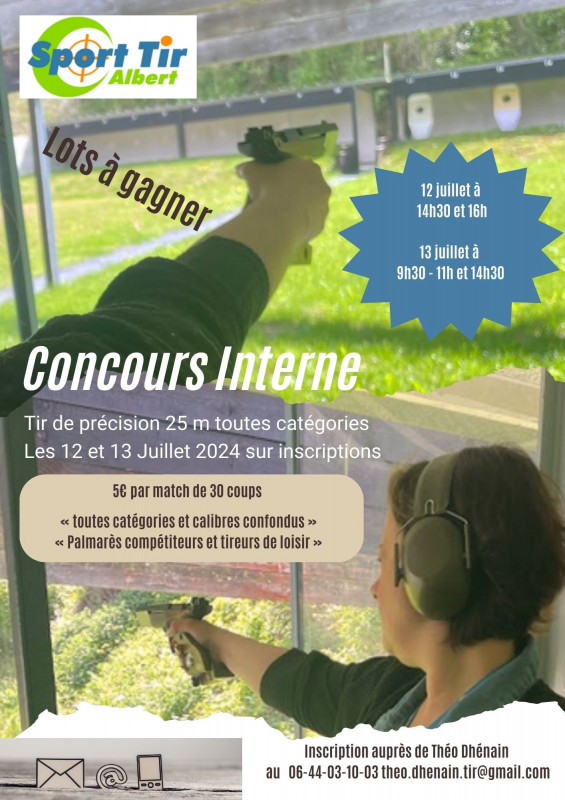 Notre club organise un concours interne à l'arme de poing au stand 25 mètres le vendredi 12 juillet et samedi 13 juillet prochains